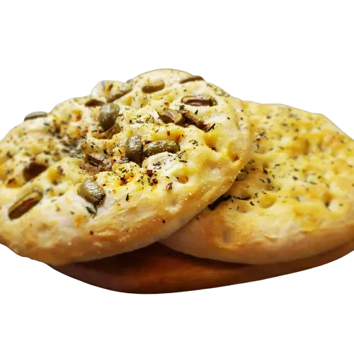 Focaccia is a flat oven-baked Italian bread similar in style and texture to pizza; in some places, it is called "pizza bianca". Focaccia can be served as a side dish or as sandwich bread.